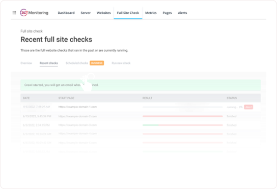 Maximize o tempo de atividade resolvendo problemas do website antes que eles aconteçam com alertas instantâneos.